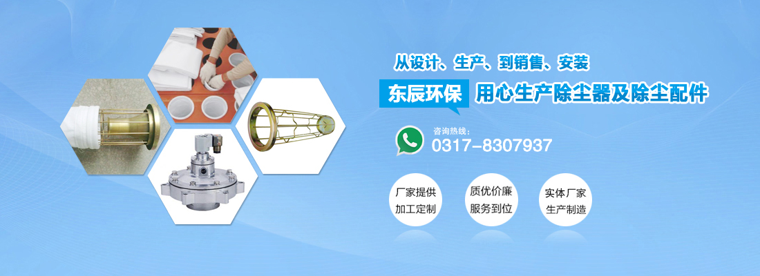 泊頭市東辰環保機械廠專注生產各類布袋除塵器、脈沖除塵器、靜電除塵器、旋風除塵器、濕式除塵器等各種大型除塵整機設備及除塵布袋、除塵骨架等除塵配件產品。我公司擁有較雄厚的技術力量和試驗測試手段,贏得了國內外客戶的認可。